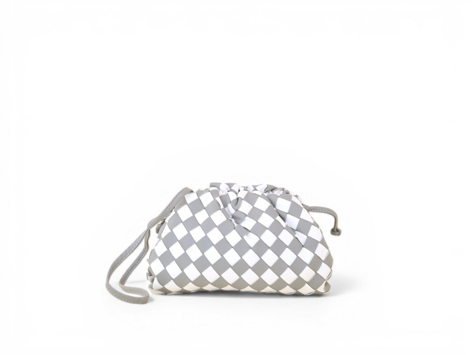 BOLSA CRUZADA O DE MANO GRIS DE VINIPIEL CUADROS BICOLOR CHICA DIVERSOS COLORES. MEDIDAS: 15 CM X 20CM