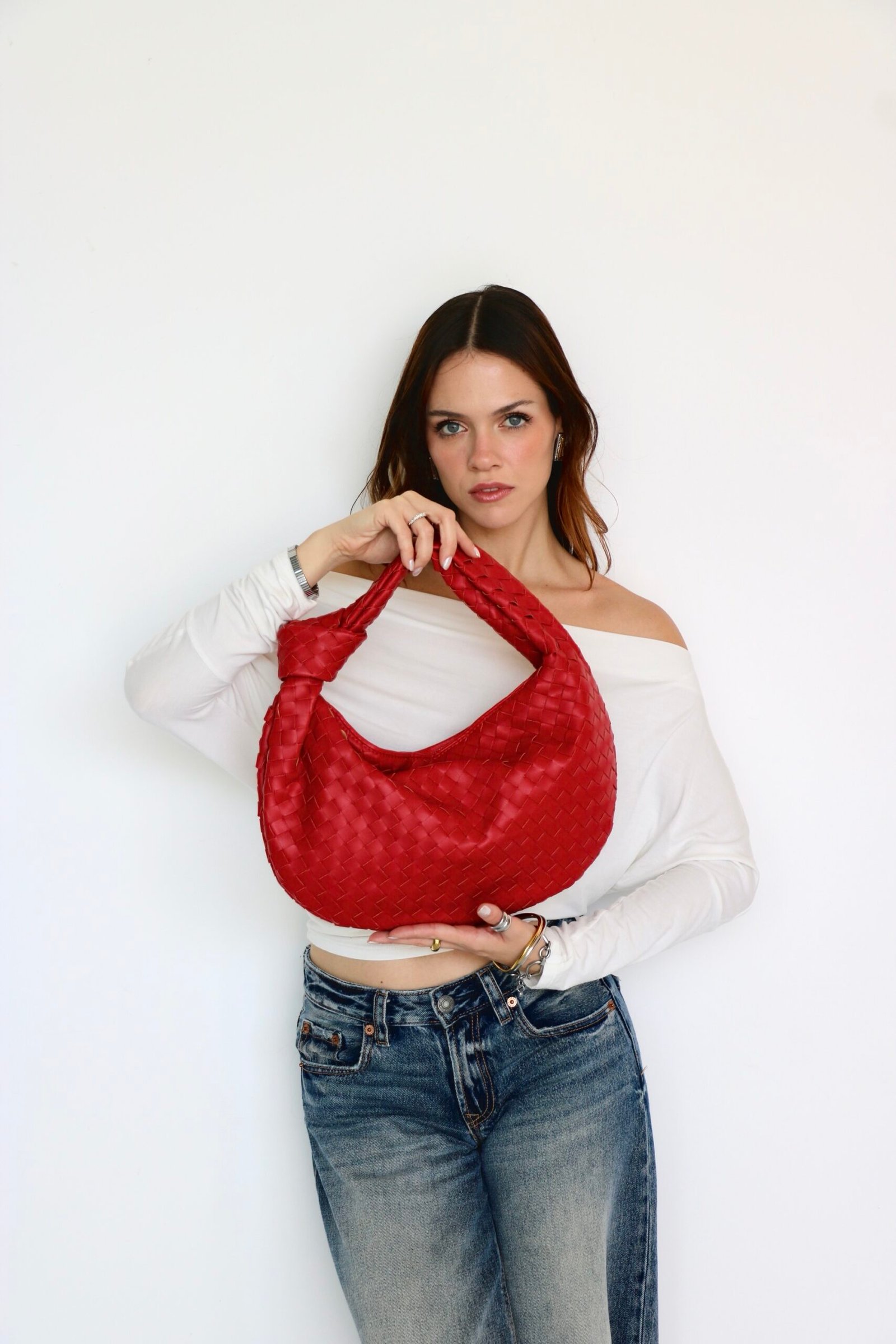 BOLSA DE HOMBRO ROJA VINIPIEL XL DIVERSOS COLORES. MEDIDAS: 23.5 cm X 41 CM
