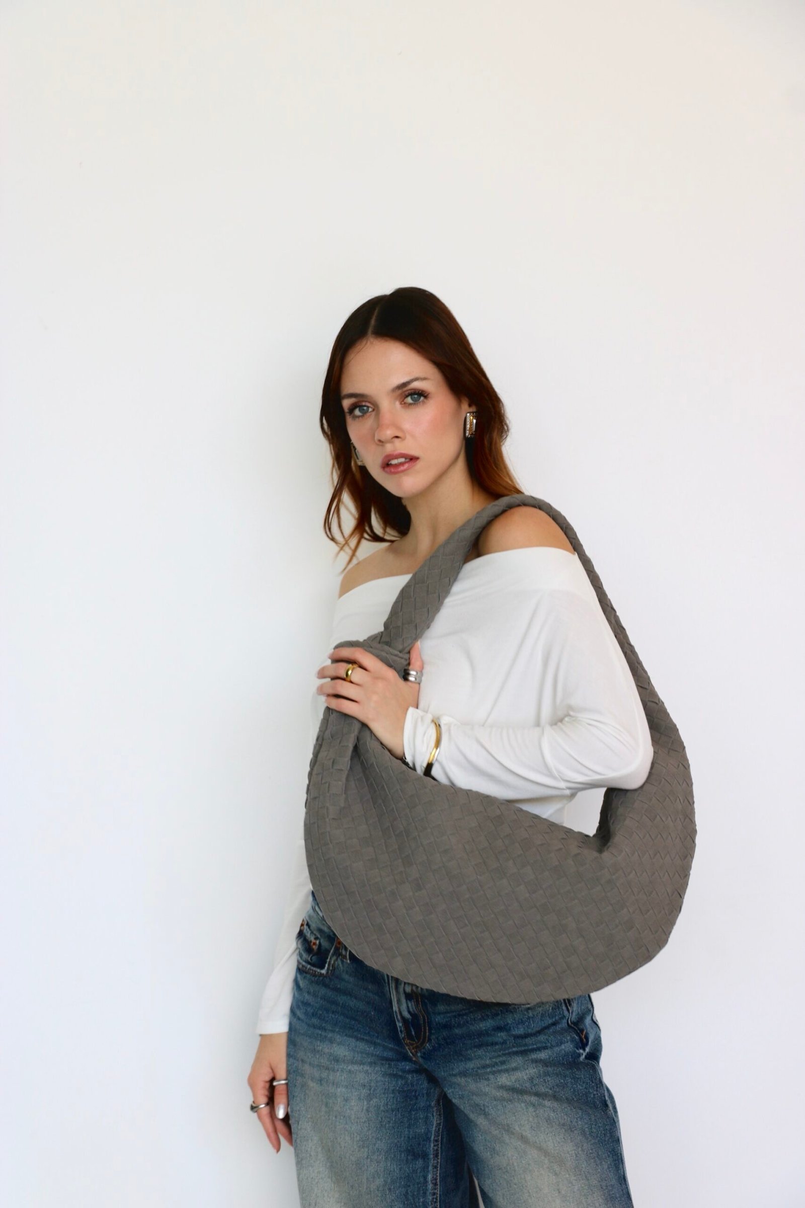 BOLSA DE HOMBRO GRIS VINIPIEL XXL ESTILO GAMUZA DIVERSOS COLORES. MEDIDAS: 27 CM X 52 CM