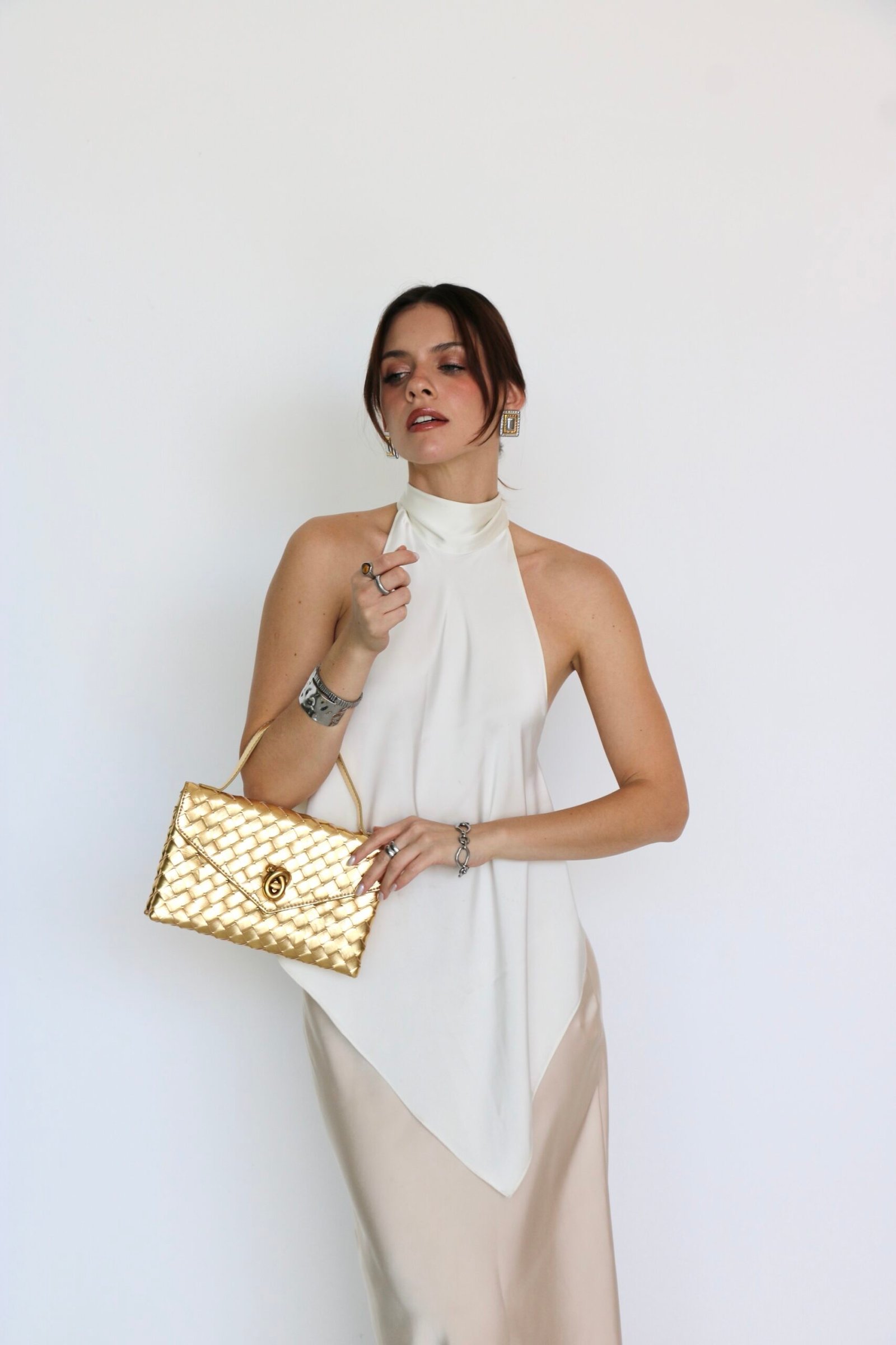 BOLSA DE MANO O CRUZADA DORADA VINIPIEL DIVERSOS COLORES.