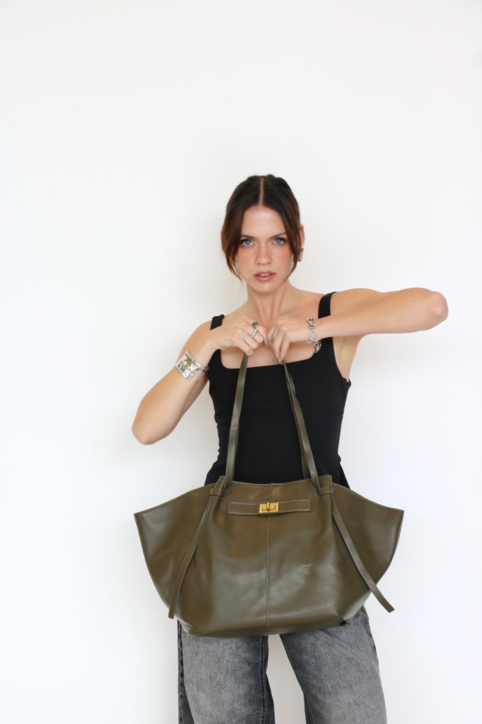 BOLSA DE HOMBRO VERDE DE VINIPIEL ÚNICO TAMAÑO DIVERSOS COLORES. MEDIDAS: 29X32 CM.