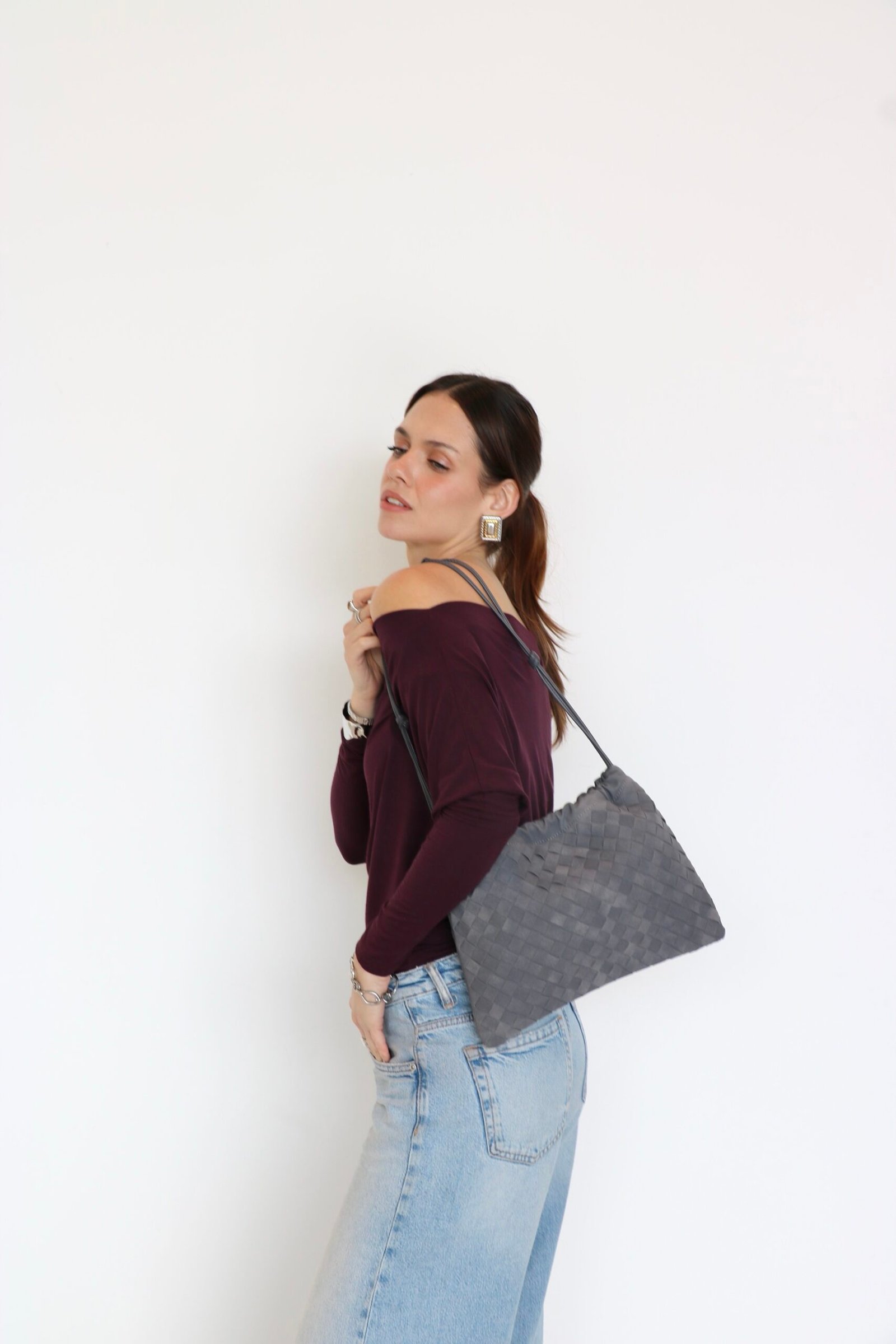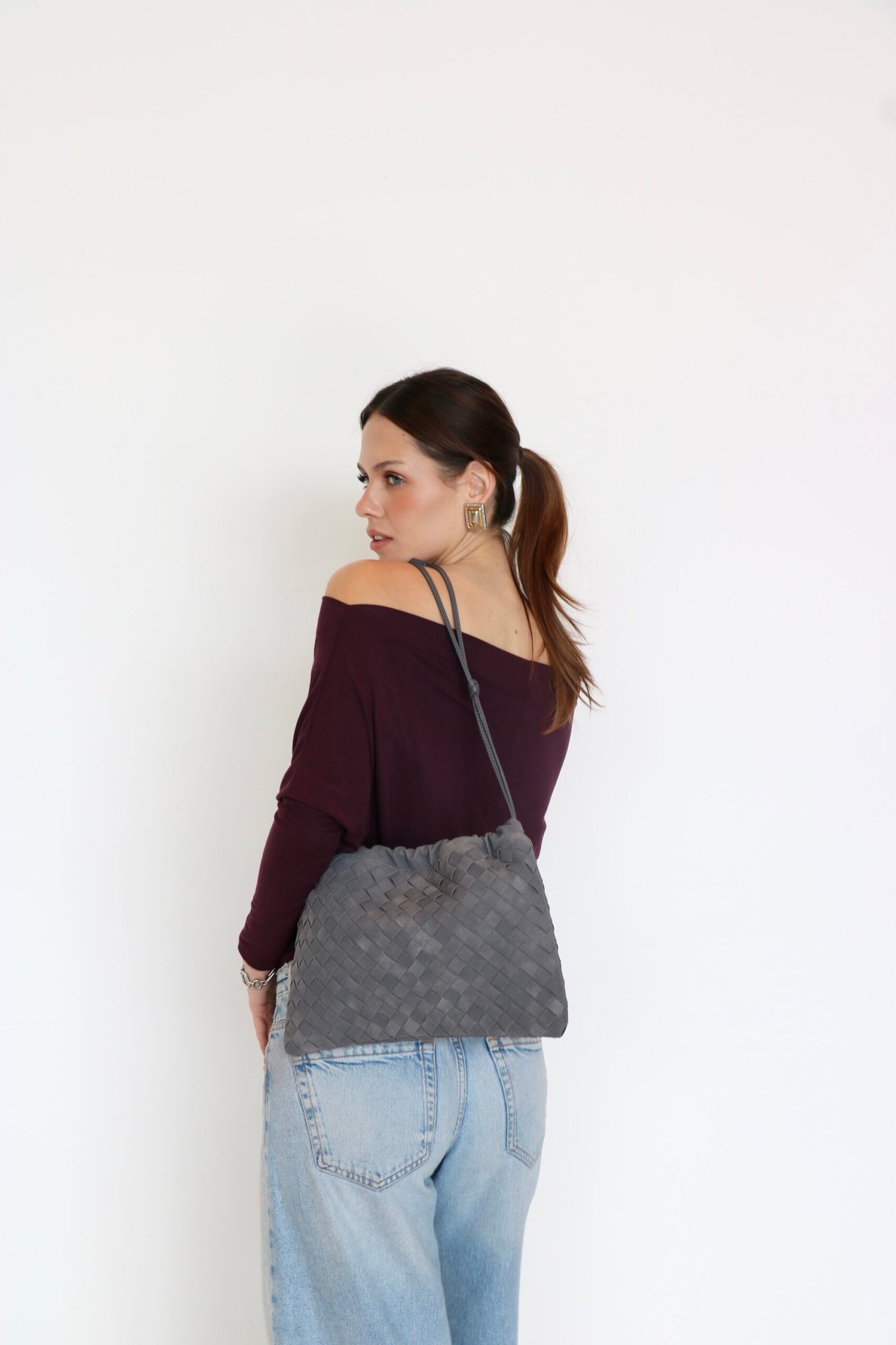 BOLSA DE MANO O DE HOMBRO GRIS DE VINIPIEL ESTILO GAMUZA ÚNICO TAMAÑO DIVERSOS COLORES. MEDIDAS 24X33 CM.